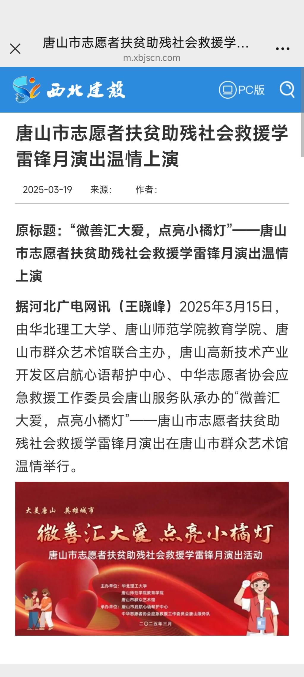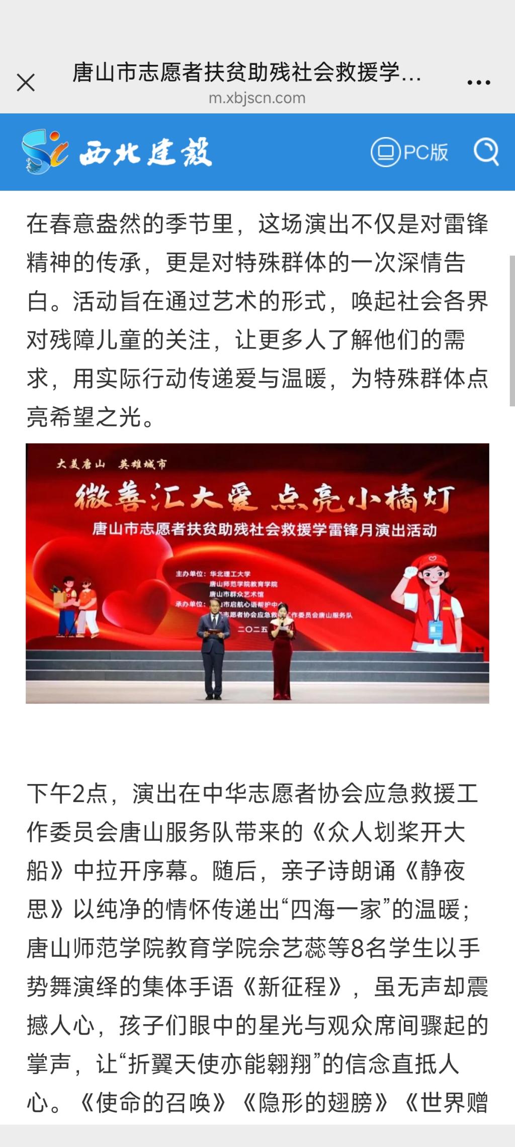 《西北建设》—唐山市志愿者扶贫助残社会救援学雷锋月演出温情上演